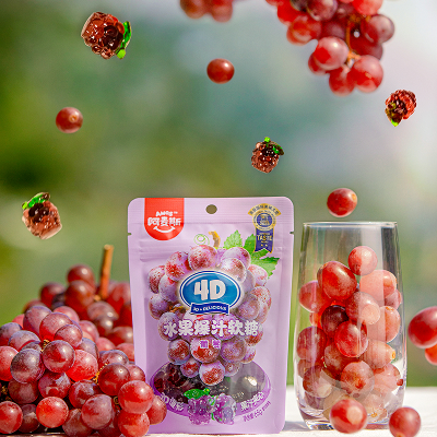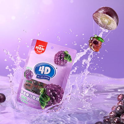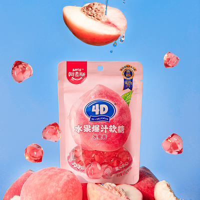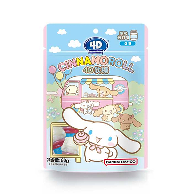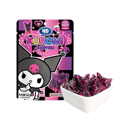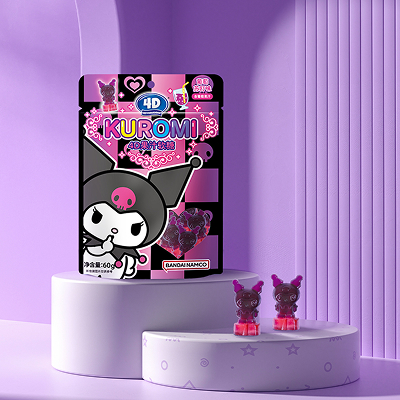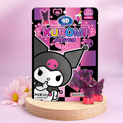 KUROMI 4D果汁软糖 葡萄苏打味、CINNAMOROLL 4D软糖 酸奶苏打味、阿麦斯4D水蜜桃爆汁软糖、阿麦斯4D金元宝爆汁软糖(金桔味)、阿麦斯4D草莓爆汁软糖、阿麦斯4D葡萄爆汁软糖、阿麦斯4D菠萝爆汁软糖